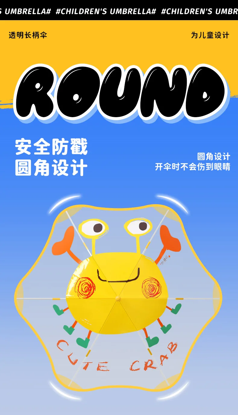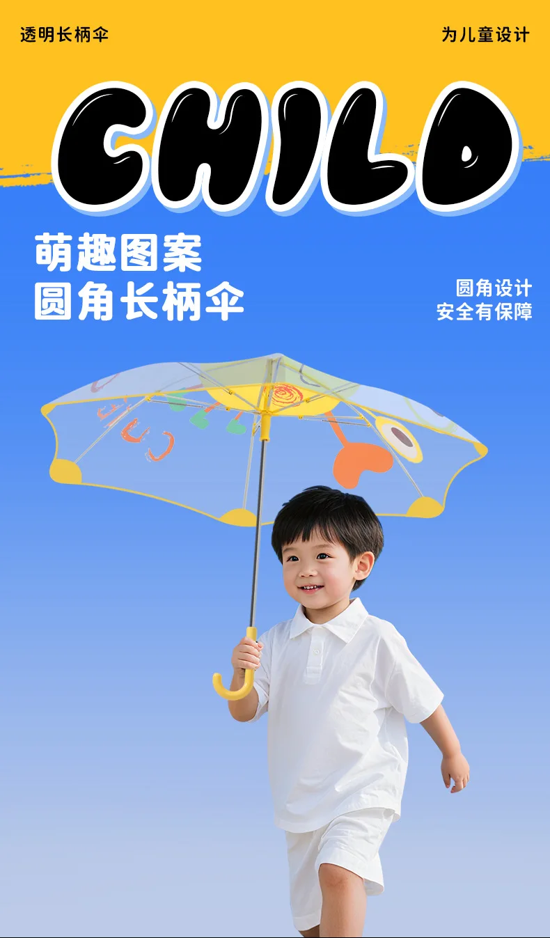 Safety Children Primary School Students Transparent Automatic Umbrella Closing for Kindergarten Boys Baby Rounded Lightweight